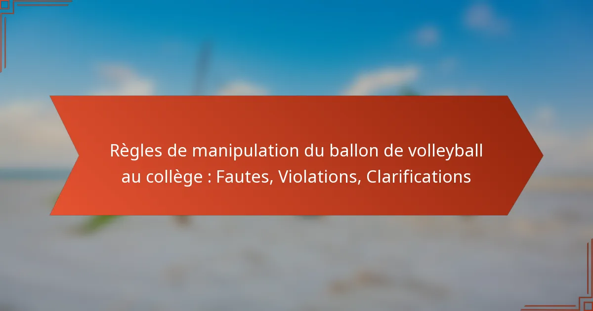 Dans le volleyball au niveau secondaire, comprendre les règles de manipulation du ballon est essentiel pour que les joueurs puissent naviguer efficacement dans le jeu. Les fautes et violations clés peuvent perturber le jeu et entraîner des pénalités, impactant la compétition dans son ensemble. En se familiarisant avec ces règlements, les joueurs peuvent améliorer leurs compétences tout en garantissant un jeu équitable sur le terrain.